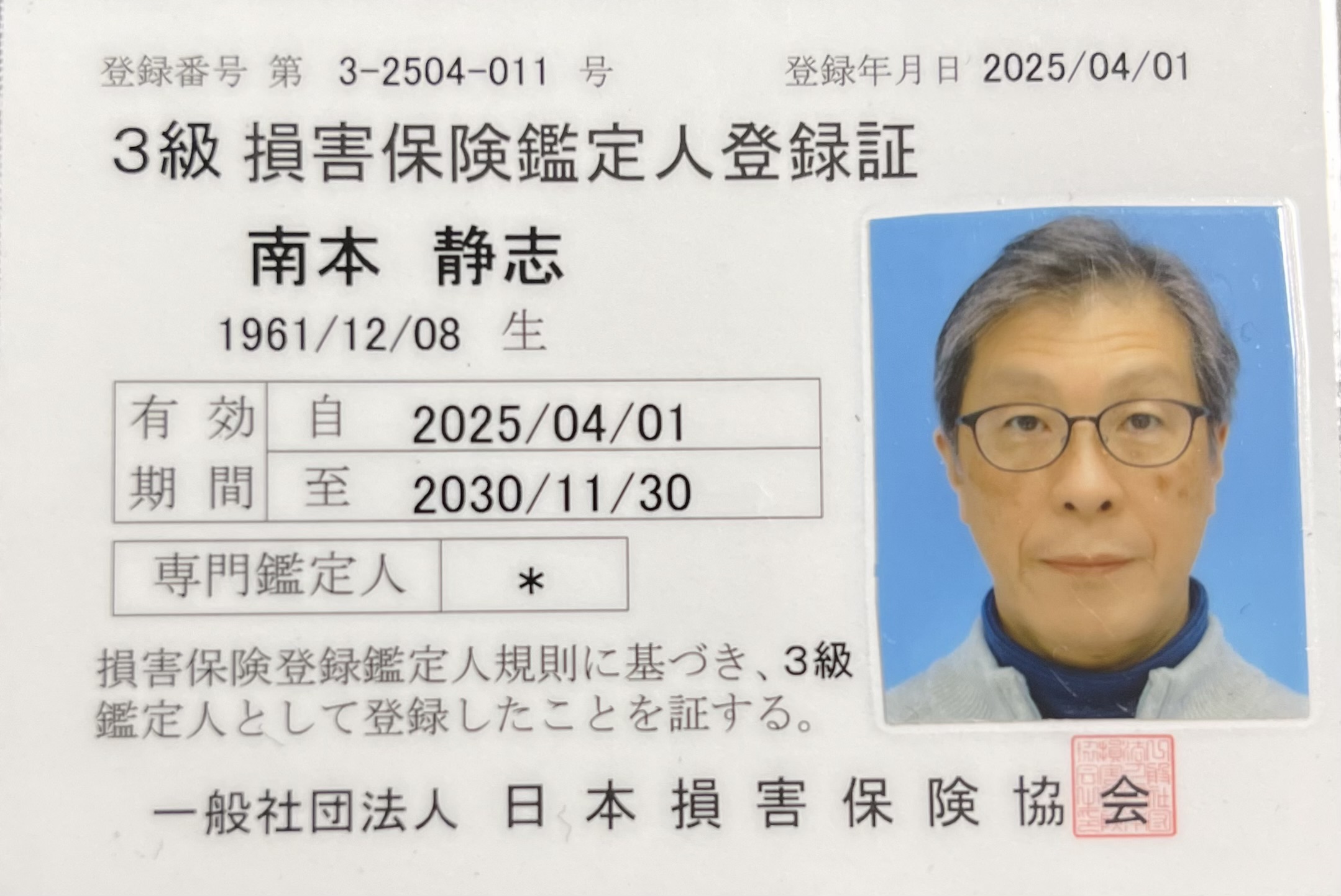 私、teamPRO【東京中央店】代表の南本静志は損害保険鑑定人の資格を保有してます。